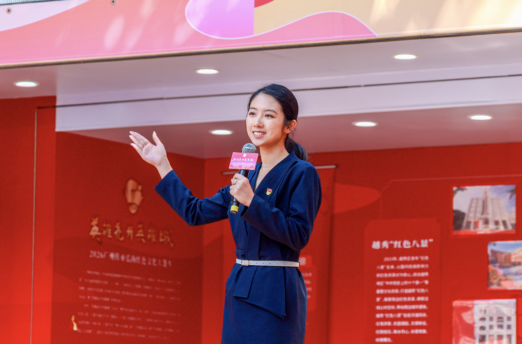 越秀区新青年宣讲员、来自北京路文化核心区管委会的李颖红深情讲述革命先烈杨殷同志,以北京路上的陈李济药厂作为革命工作的联络点,组织工会、发动工人参加革命斗争的故事;广州市最美红棉老兵、越秀区关工委“五老”红色宣讲团成员罗仲哲分享他在英雄精神浸润下成长、参军参战报国的故事,对越自卫反击战前夕,他在上衣口袋里留下“若我牺牲,请作党费”的字条,里面夹着12块钱。如今作为红棉老兵,他依旧坚持参加各种志愿活动……