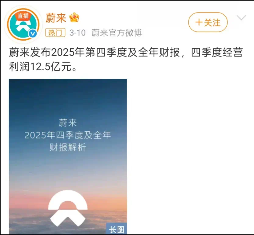 这个目标终于在最近变成了结果:2025年四季度,蔚来交付12.48万辆,同比增长71.7%;经营利润12.5亿元,上市以来首次实现季度盈利。