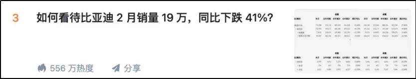 一方面销量下滑。从去年12月开始,比亚迪销量连续3个月出现下滑,2月更是同比下跌41%,痛失销冠宝座,上了热搜。
